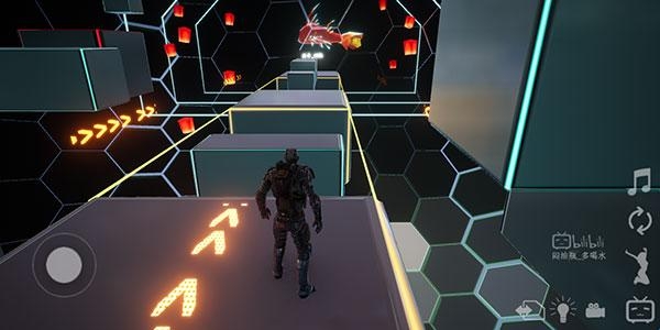 1、玩家进入游戏之后,会出生在一个堆满方块的【初始场景】中,其中部分方块会处在移动状态,不小心掉落会被传送至出生点。