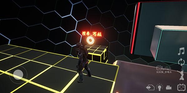 3、下图就是【新场景】的样子,基本上还原了原作的场景,而且你也能在场景中发现许多彩蛋,左下角是虚拟摇杆,可以控制玩家的行走。