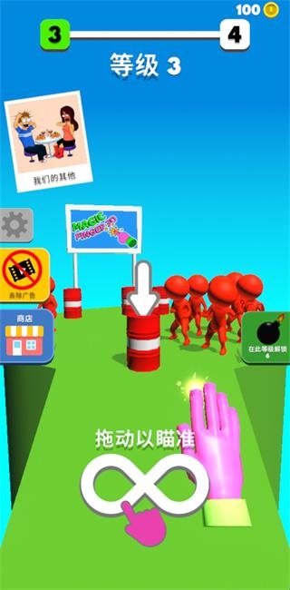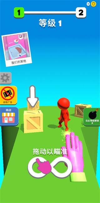 1、首先我们进入原力指指游戏当中,操作非常的简单,拖动屏幕来控制手套;