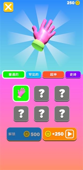 7、另外,结束游戏之后我们还可以去解锁其他的手套,每个手套的皮肤属性都不一样哦!