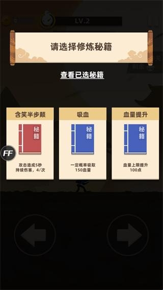 4、玩家每过一个关卡就会有秘籍可以选择,每个都不一样。