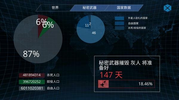 5、还可以升级所选入侵种族的传播、军事和适应能力;