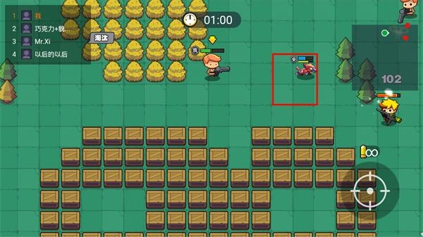3、合成好武器之后我们就先进入游戏,在游戏中我们需要打败另外三个才能获胜,在右上角有一个小地图,红色代表敌人绿色就是自己了。