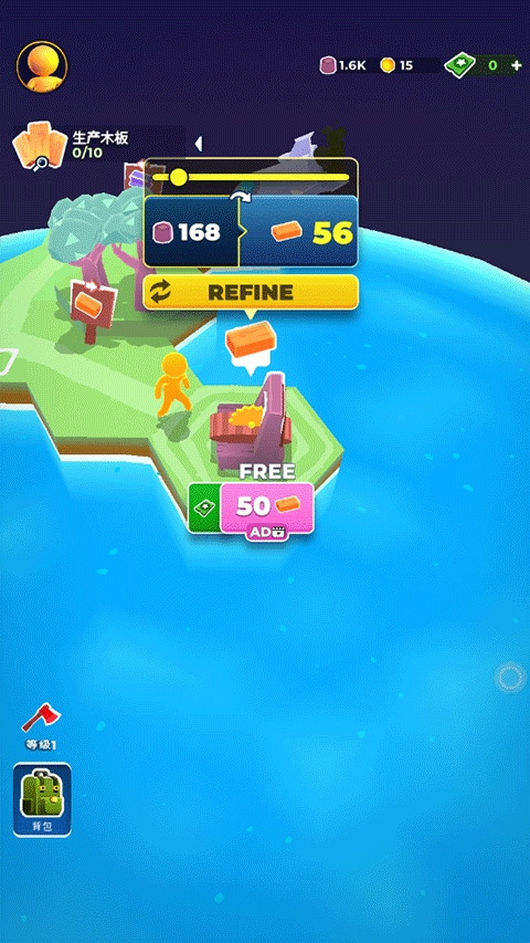 2、将获取的资源丢在空余的地方即可制造出一片新的土地,这样就有更多的木材可以砍了。