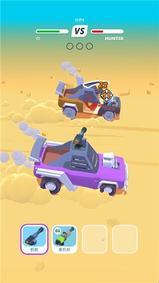1、这是一款用战车战斗的手机射击游戏。这是一种令人兴奋的战斗方式。它在贫瘠的沙漠中疯狂加速,以绝对的力量驱动你的战车,然后打败更多的对手。你需要控制你的战车,在前进的同时消灭你的对手。赢得的金币也可以用来升级战车。