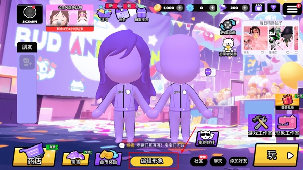打开BUD来到游戏首页,点击下方编辑形象选项。