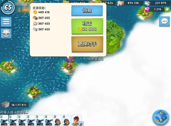 随着地图的扩大,可以看到很多其它玩家占领的岛屿,打败这些玩家占领岛屿后就可以一次性获得玩家岛屿的近半数资源,所以占领敌方岛屿是获得资源的最快的方法,但也存在着敌方岛屿数量太少或者等级太高的问题。