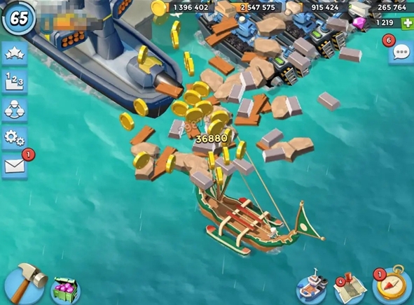 另外在自己的海岛上,初始阶段海岛的大片面积都被树木和石头覆盖着,通过使用金币可以砍伐树木获得木材、或者挖石块来获得石材。这些资源也是很好的来源。