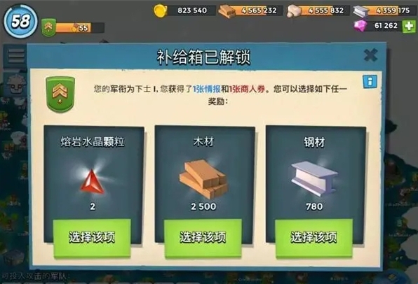 赢取5个奖牌你将可以解锁补给箱,收获资源的同时还能获得1张情报和1张商人券。