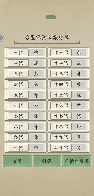 冠姓这里推荐选择随自己姓,随父姓或是随母姓,后续角色随父姓女角色或是随母姓男角色到游戏中期,这个人噶了是没有子孙后代可以继承人生的,就像我一样,最后只能选择重开。(成人礼建议20岁,16岁太小啦)。