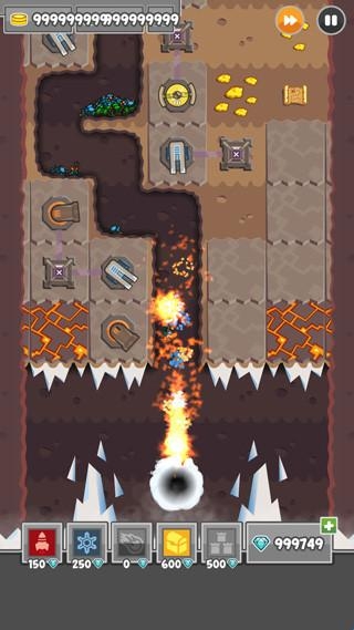 2、这是一款挖掘类的塔防游戏,玩家所挖掘出来的道路便是敌人前进的通道,这使得玩家在挖掘到期间需要有所注意,这并不是让你在固定路线中搭建防御塔迎击敌人。