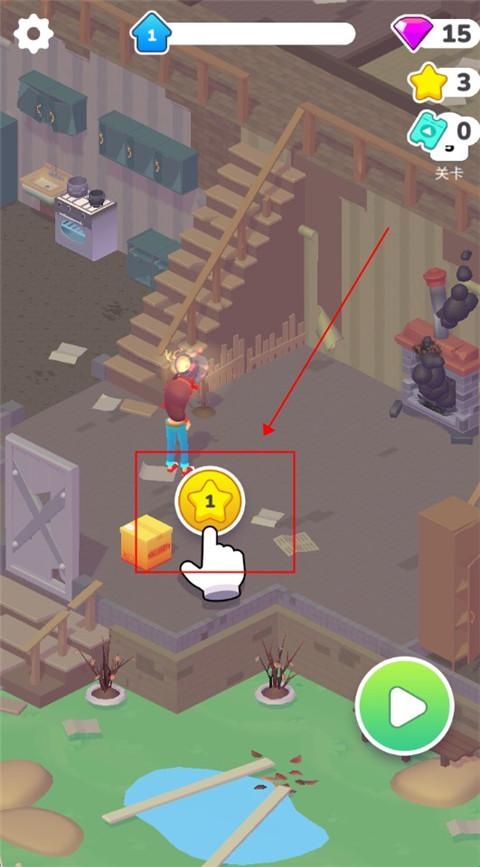 4、进入关卡后,在这里我们点击此处就可以开始装饰房间了