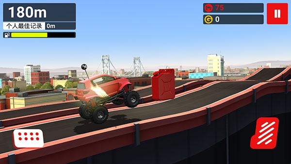 4、技巧之一:向上倾斜,在半空中踩下油门将会使卡车向后倾斜。
