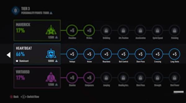 新的球员性格系统,根据球场内外的行为来决定球员的性格。有三种不同类型:个性型、领袖型、大师型。分别代表了机会主义者、球队核心、技术精湛者。球场之外的事件,无论看望队友还是无视他们,无论投资科技公司还是购买跑车,都会有影响性格,系统会搜集和评估球员行为。工资和投资的收益可用来解锁新功能,或者提升属性。