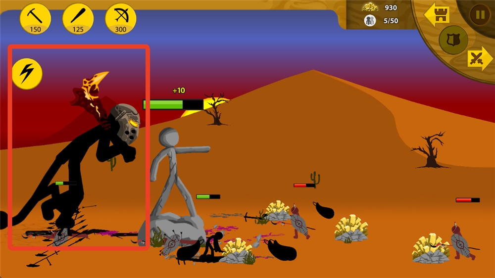 1、游戏中玩家将亲临激烈刺激的战场,指挥你的火柴人勇士进行作战,而且游戏中有着各种火柴人士兵可供训练。