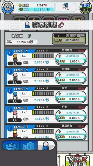 另外,还可以通过【升级机器】或者【市民研修】来增加收入哦