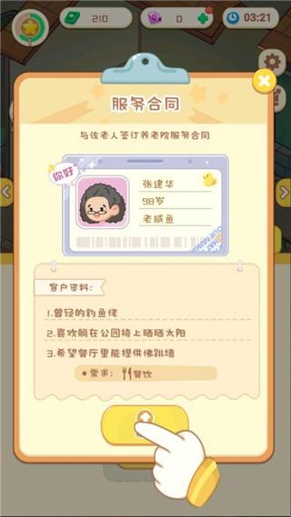 4、注意,入住的客户都会有一些小要求,一定要及时满足他们的需求哦,不然老人的幸福度就会降低。