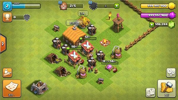 2、进入游戏你就能发现我们这个部落冲突海外破解版有多变态,游戏内的金币和圣水多到压根就用不完,不仅如此还有六十万宝石可以使用;