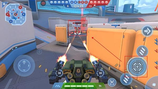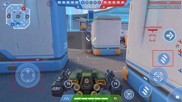 1、玩家进入模式后,可以通过左侧轮盘控制机甲移动,右侧按键控制机甲射击、释放技能等。