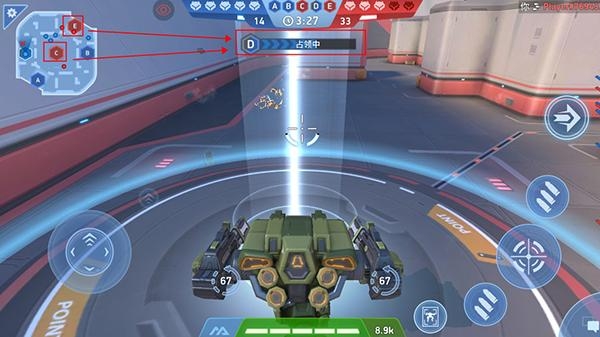 3、据点模式自然需要玩家占领据点啦,玩家在地图上可以看到据点位置,控制机甲移动到据点内进行占领,为蓝色图标后即可占领成功。