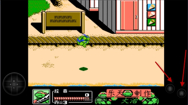 4、右侧分别控制跳跃和攻击,其中“A”键控制跳跃,“B”键控制攻击。