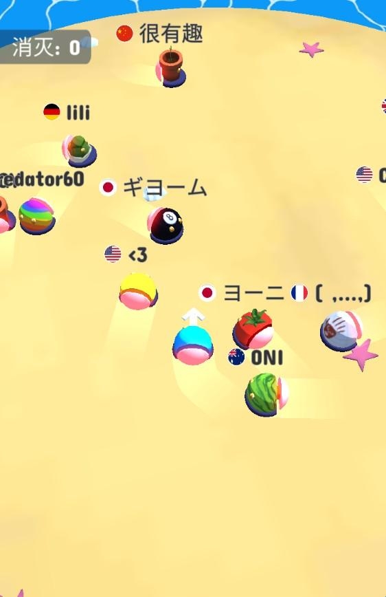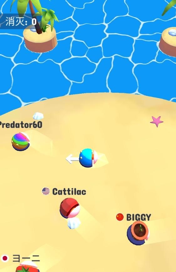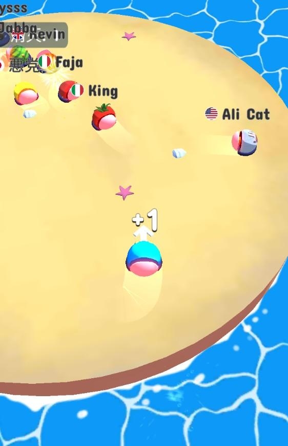 3、当我们撞击对手,将它们撞击出场地后可以获得分数,并且球也会变大。