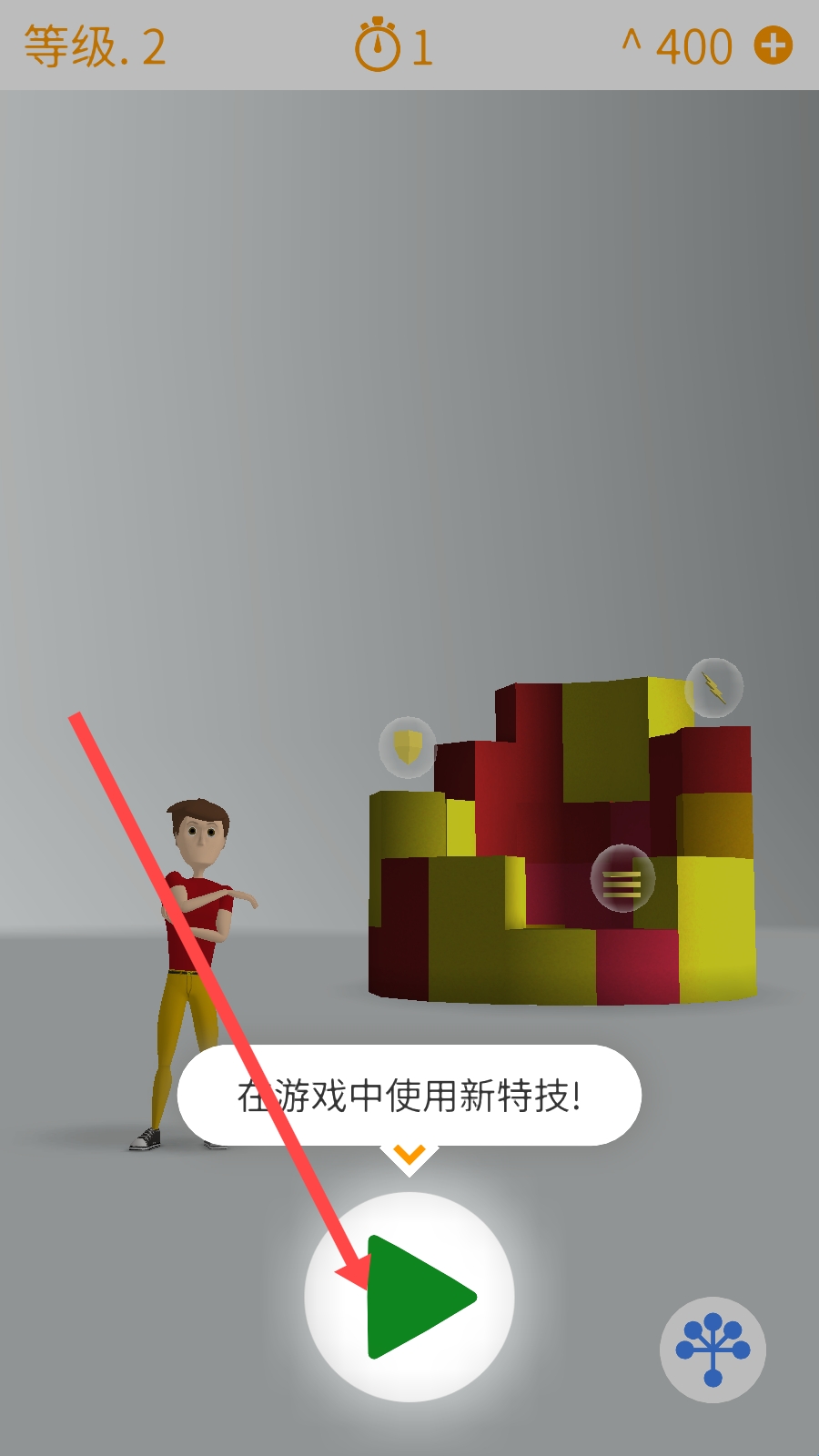 1、在游戏准备界面,点击绿色播放按钮,进入游戏关卡。