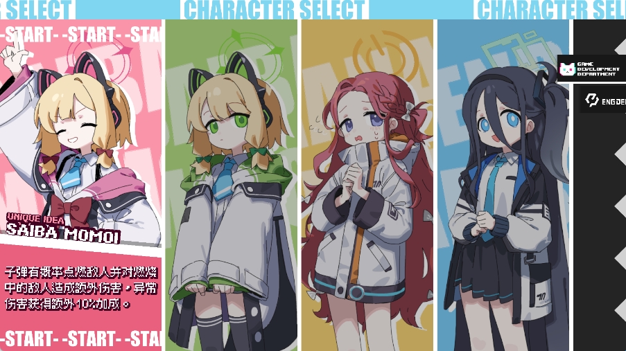 世界观改编的像素风弹幕射击肉鸽游戏, 包含多位《蔚蓝档案》风格角色,每位拥有独特技能与攻击方式。武器射击与技能音效还原原作风格,Boss战配乐紧张感十足!