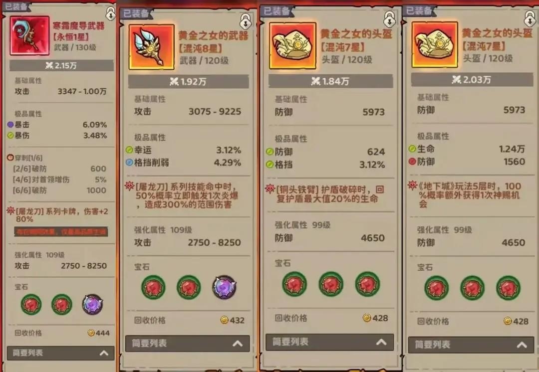 下层四件:屠龙出卡几率必带,然后神带背带裤和铜头铁臂这两个可以合成幻影屠龙和盘龙的,然后其中一个有望合成成功后,换成血瓶卡、神赐刷新+1(当前版本未生效)、魔盒。