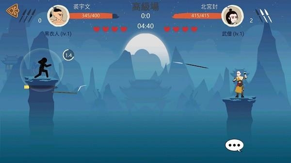 手指调整角度,对手和你还隔着一段的距离,想要准确的用标枪瞄准击中对方。你要一开始投几个以测量你和他距离,之后你只要站在你的平台上面上不断发射攻击。角度一定要调整好,命中率也一定会变高的。