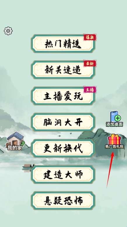 1、首先打开你下载安装好的游戏,进入之后点击“免广告礼包”