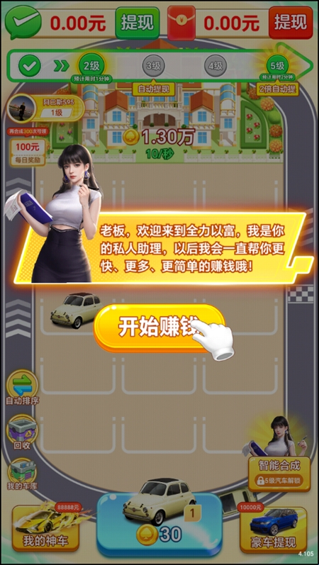 全力以富红包版是一款极具创意的消除类休闲手游,游戏中,玩家通过点击宝盒生产汽车部件等多元元素,将相同元素移动至同一行进行收集与消除,巧妙规划路径,考验反应与布局能力,游戏包含大量豪车,玩家可拖动合成更高等级车辆,解锁保时捷、布加迪威龙等限量级豪车,满足收集欲,通过合成解锁新等级汽车,玩家能获取丰厚红包奖励,同时设有消除闯关任务,完成即可领额外礼包,游戏操作简单,画面精美,搭配灵动音效,带来沉浸式体验。