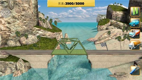 2、先进的物理引擎,游戏精确模拟了桥梁在各种力学条件下的表现,也包括重力、压力、张力、风力等。