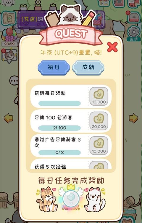 3、玩家在建造好之后就可以点击右下角小猫图标招揽顾客啦!