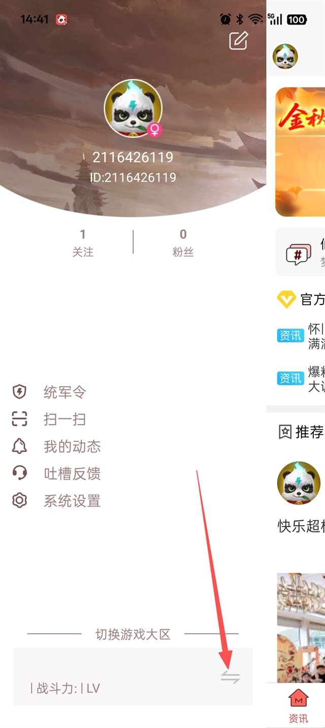 2、然后点击切换游戏大区