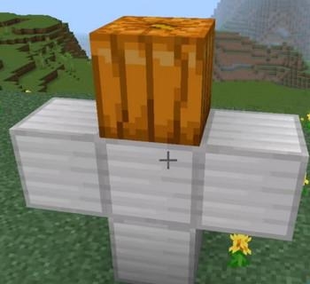 放置南瓜:拿出南瓜,放在铁傀儡的身上,这样一个铁傀儡就出现了。注意头部一定要最后放,否则不会出现铁傀儡。