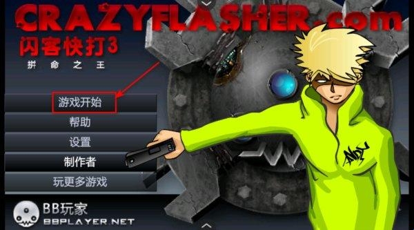 1、打开闪客快打3无敌版,点击游戏开始。