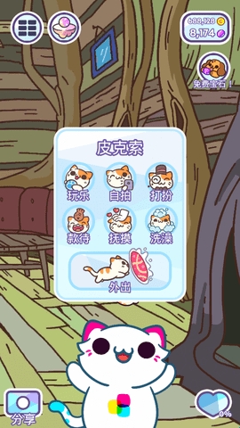 3、回到游戏主页,我们点击猫咪还能与猫咪互动,选择你要互动玩耍的项目吧。