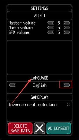 2、在主界面中在点击“LANGUAGE”后点击箭头。