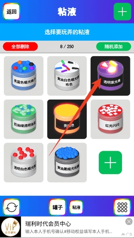1、如果想做好看的泥,我建议选择那些发光的粘液,所以我选择“透明紫光效”。