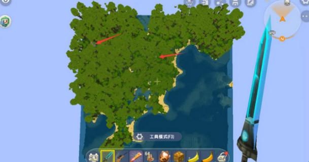 1、首先,玩家需要先切换到编辑模式,接着利用系统自带的飞天技能,飞到海拔100米的高空,这时玩家就可以清晰的看到在茫茫一片绿植中会存在几处显眼的灰色。没错,那里就是神像所在的区域。