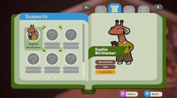 您的嫌疑人页面将打开。点击长颈鹿并添加苏菲·温特海默作为她的名字。
