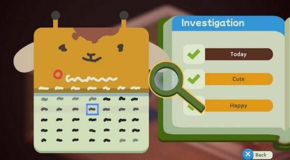 走到房间左上角的日历处并与其互动。将鼠标悬停在与蓝色方块约会在它周围,红色圆圈,以及长颈鹿脸上的微笑。