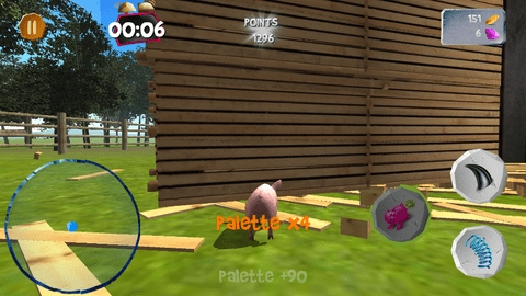 3、开始你的模拟探索吧,先想办法逃离这片区域,左侧滑轮摇杆可以控制小猪移动,右侧按键是几个攻击键,自己去尝试一下吧。