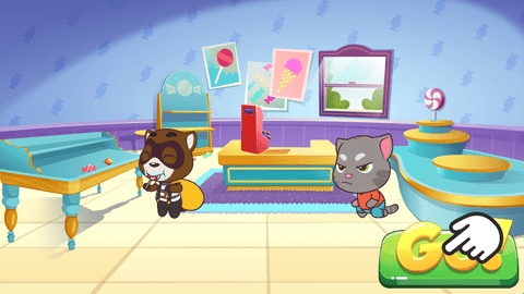 汤姆猫快跑是汤姆猫系列的休闲跑酷冒险游戏,这款游戏采用的是Q版卡通画风,里面的角色都非常呆萌可爱,并且都是大家熟悉的卡通角色,汤姆猫、安吉拉、金杰猫等等,都是我们的老朋友了。这次你的糖果店被洗劫一空了,并且正好你发现了小偷,赶快追上他,将糖果都追回来吧。