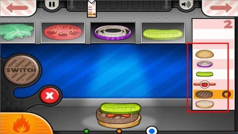 3、点击右下角的按钮,切换到烧烤台,开始制作汉堡。