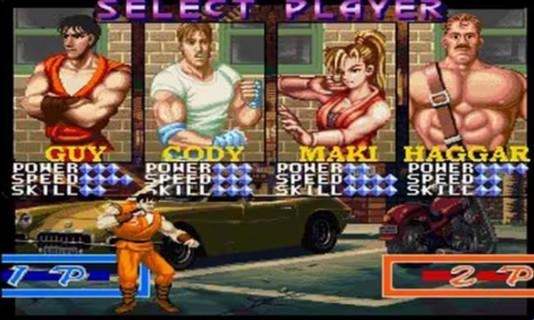 2、更重要的是人物角色明显变大,着装、动作、表情等细节清晰可见,无论我方敌方形象开始深入人心,后来卡普空推出的格斗游戏《少年街头霸王》系列中,我们熟悉的科迪、凯、苏杜姆、罗兰多等人物,都是在本作中首次登场亮相。