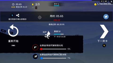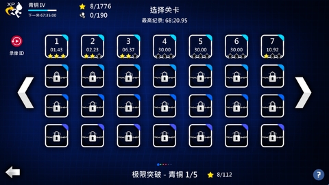 大量金币(必须挑战当前段位所有关卡才可以到下一个段位的章节)