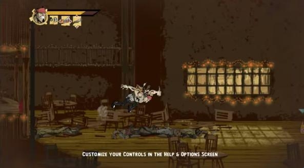 飞扑:跳起来扑向面前的一名敌人,扑倒后有很多种连招方式右shift键顺便提示一下飞扑类招式在闪客1中对壮汉没卵用而且还会被抓住来套组合拳