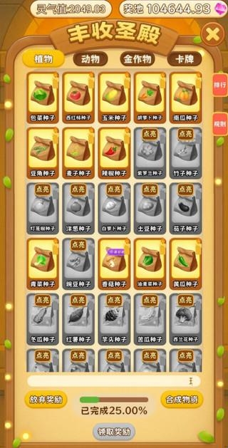1、点亮单个作物图标就能根据作物的宝石价值获得对应灵气值。